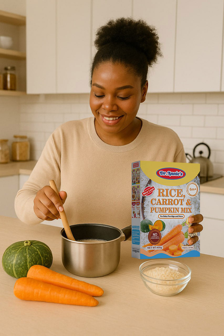At Dr. Annie, we believe nutrition shapes brain development and cognitive function for life. That's why every product we create is packed with purpose, combining brain-boosting ingredients like unpolished white rice, carrot, and pumpkin, which are rich in omega-3 and omega-6 fatty acids, iron, calcium, and essential B vitamins. These natural nutrients work together to support focus, memory, and healthy brain growth in little ones during their last, most critical years.